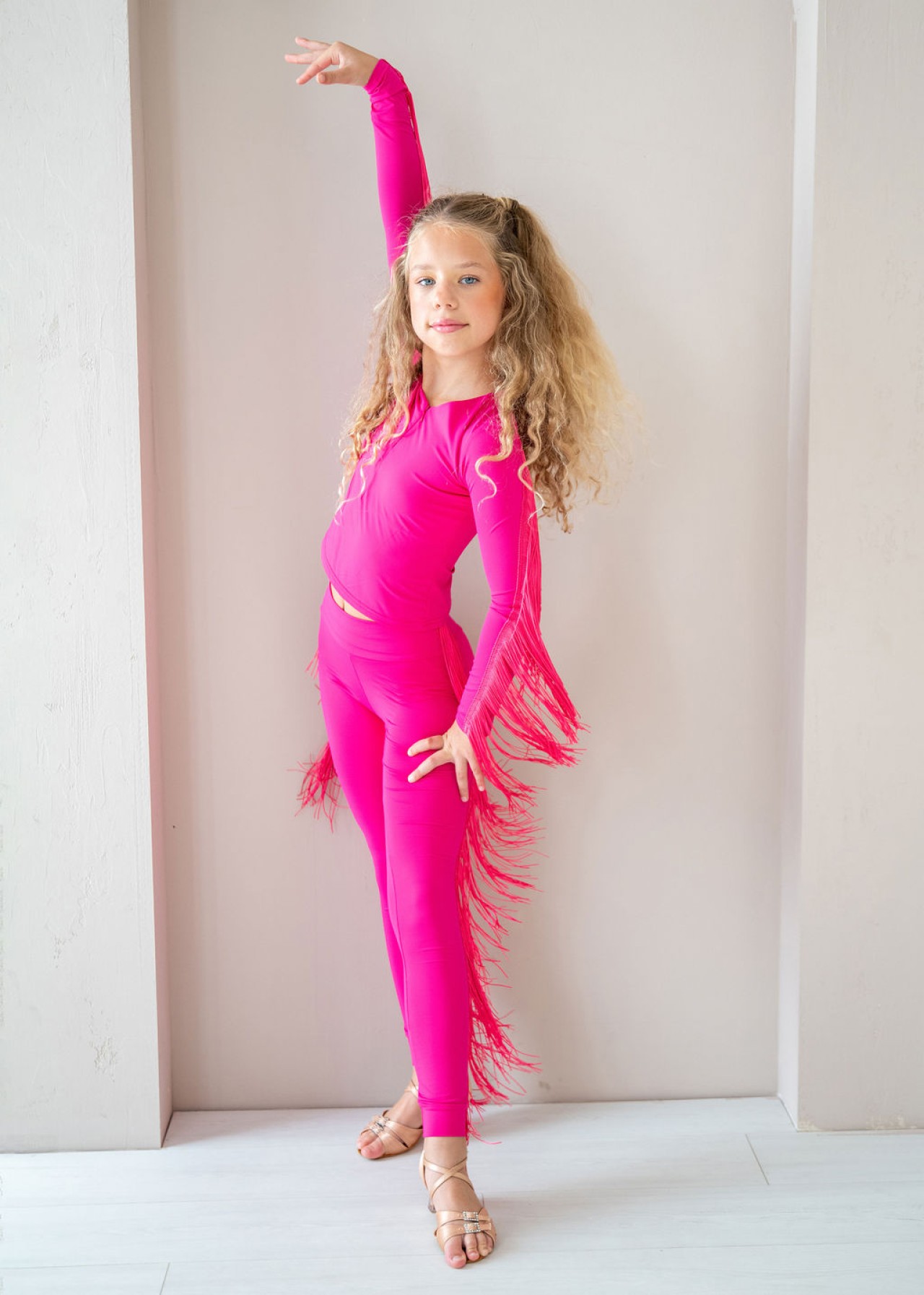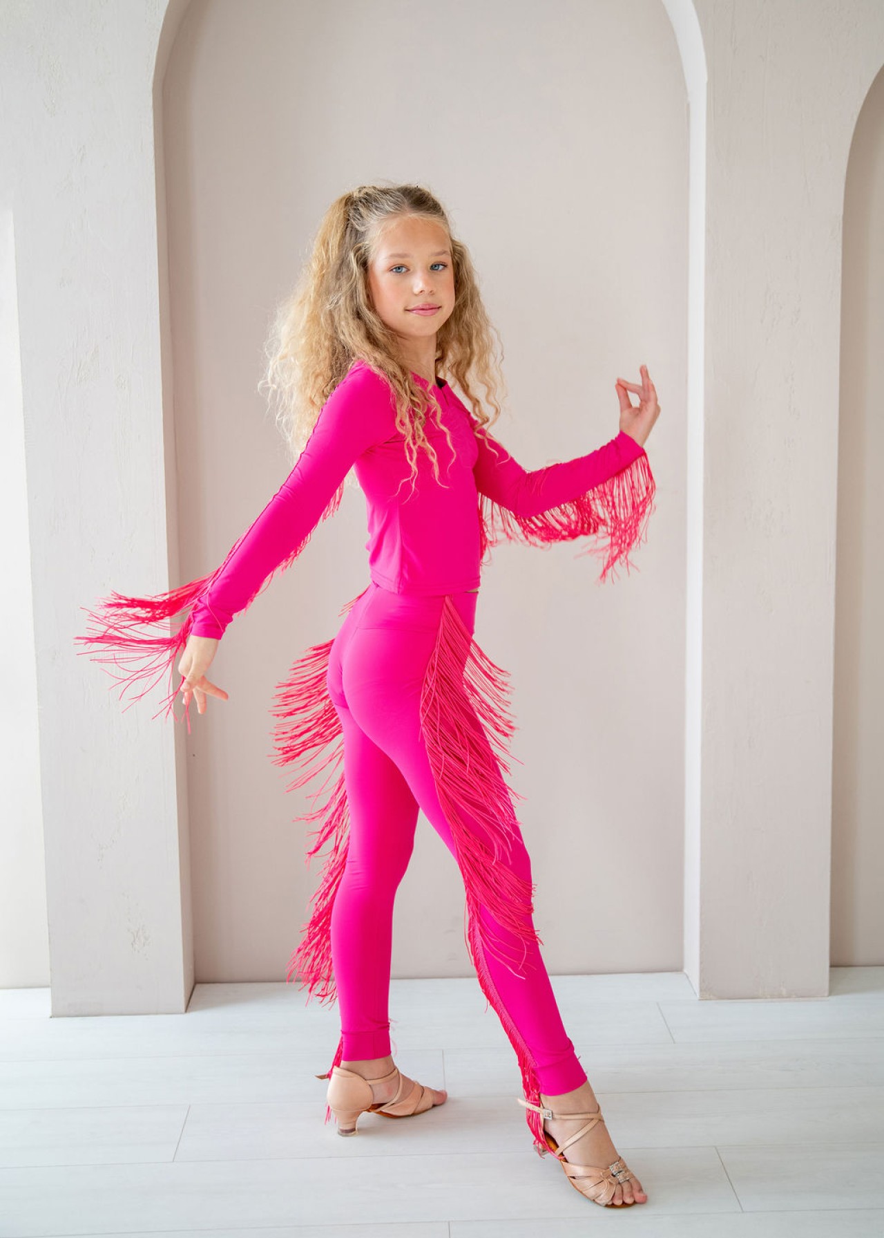 - A lábszárak vonalát egészen a derékrészig pedig 10cm-es rojttal díszítjük, ami mozgás közben életre kel ( a fotókon egyedül a rózsaszín szett készült 20cm-es rojttal)