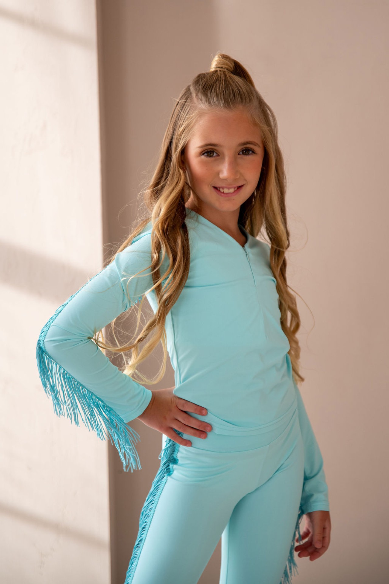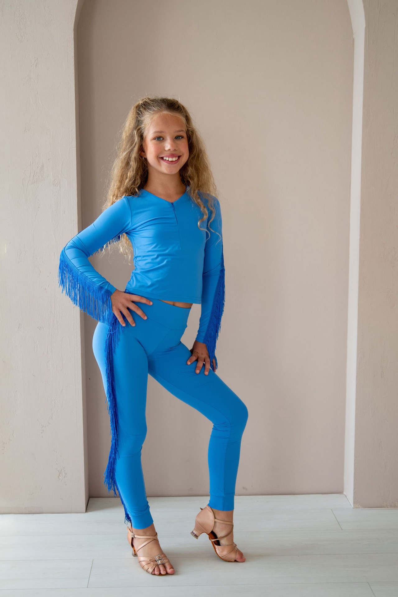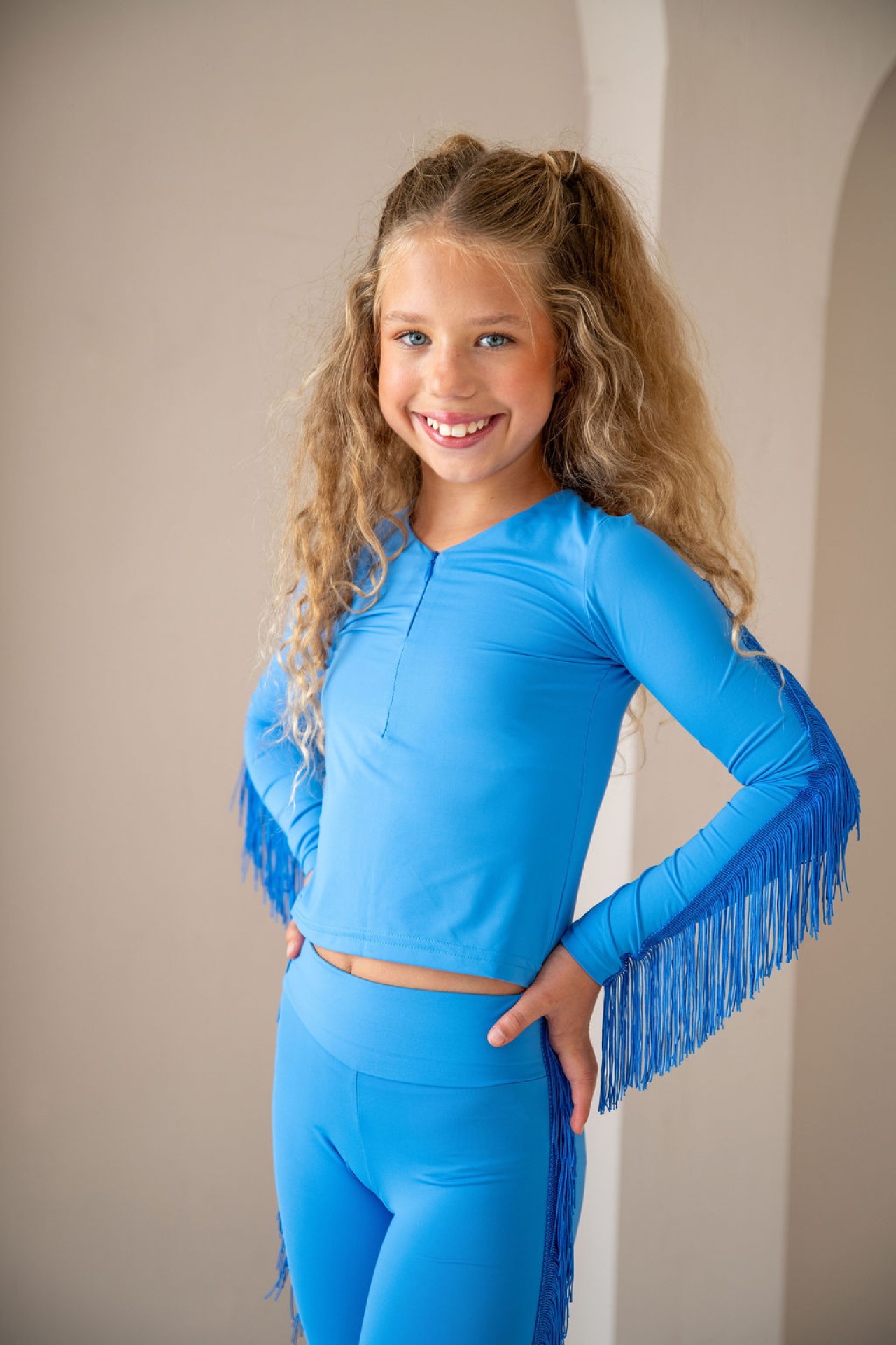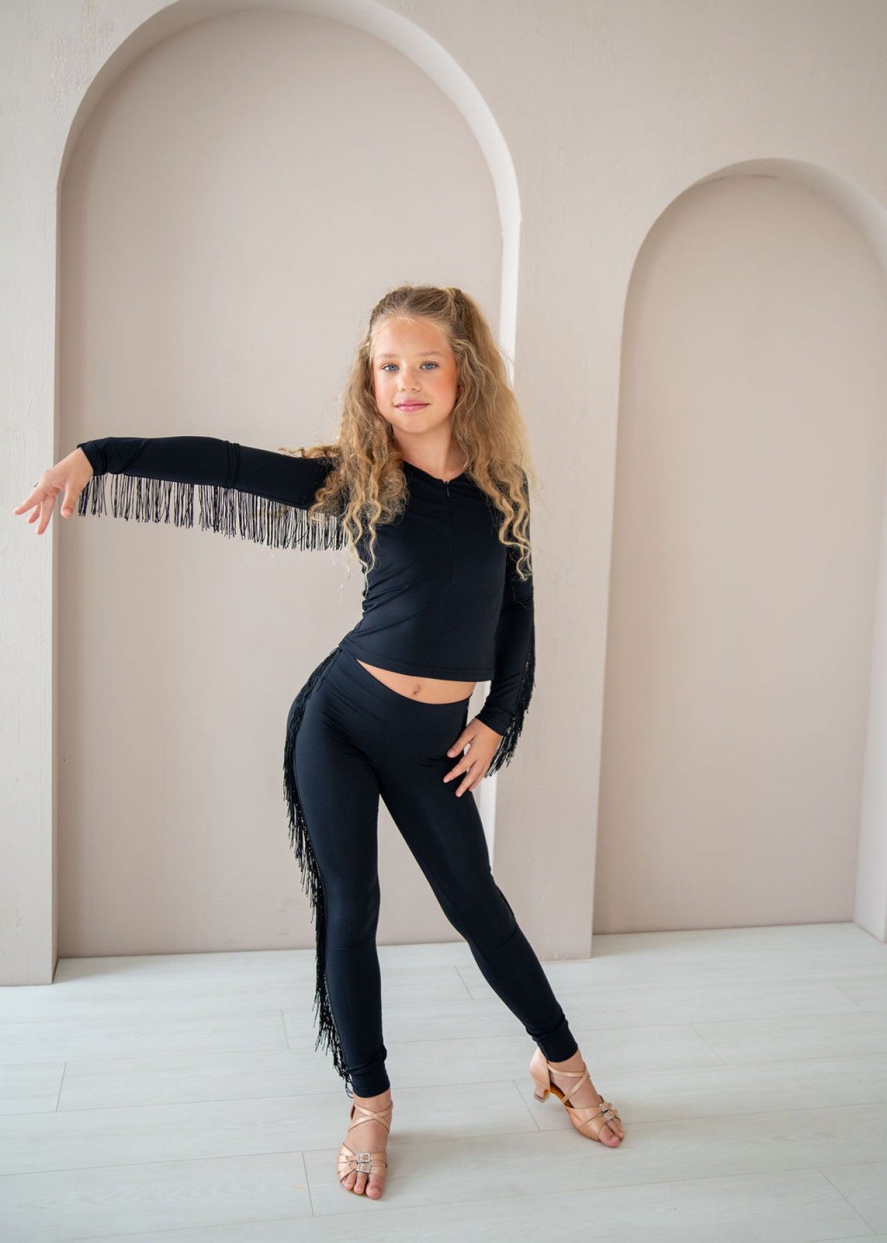 - felső hosszú ujjait 10cm-es rojttal tesszük érdekesebbé, ami mozgás közben életre kel
